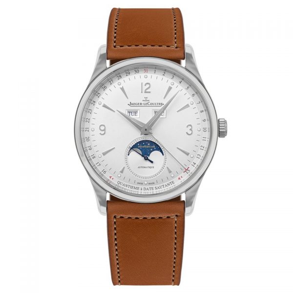 Con il nuovo Master Control Calendar, le fasi lunari offrono una complicazione orologiera: la data saltante, che vola tra il 15° e il 16° giorno del mese. Novità assoluta della collezione Master Control, questo meccanismo permette di non perdere mai di vista le fasi lunari, situate in un’apertura a ore 6. Nella versione in acciaio inossidabile, perfettamente abbinata al quadrante argentato a raggi di sole, il Master Control Calendar offre un calendario completo. Sotto il fondo in vetro zaffiro, il retro dell’orologio rivela i componenti del suo calibro di nuova generazione, che promette una riserva di carica di 70 ore.