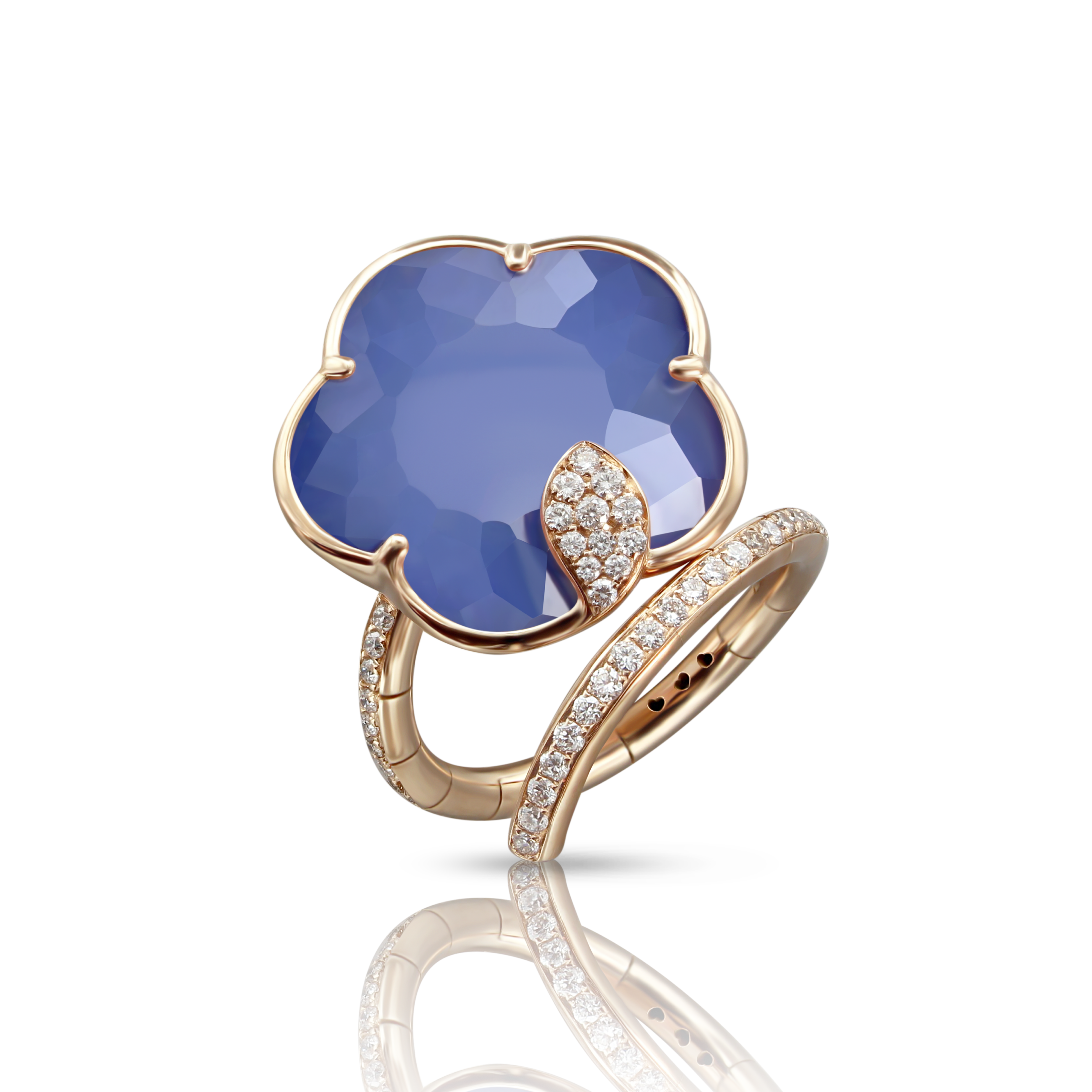 ANELLO IN ORO ROSA CON DIAMANTI BIANCHI E CHAMPAGNE, DOPPIETTA IN AGATA BIANCA E LAPISLAZZULI REF:15945R