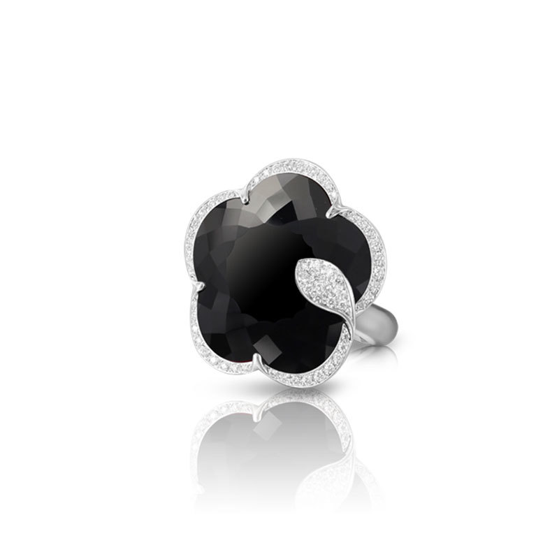 ANELLO IN ORO BIANCO, DIAMANTI ED ONICE REF: 15734B