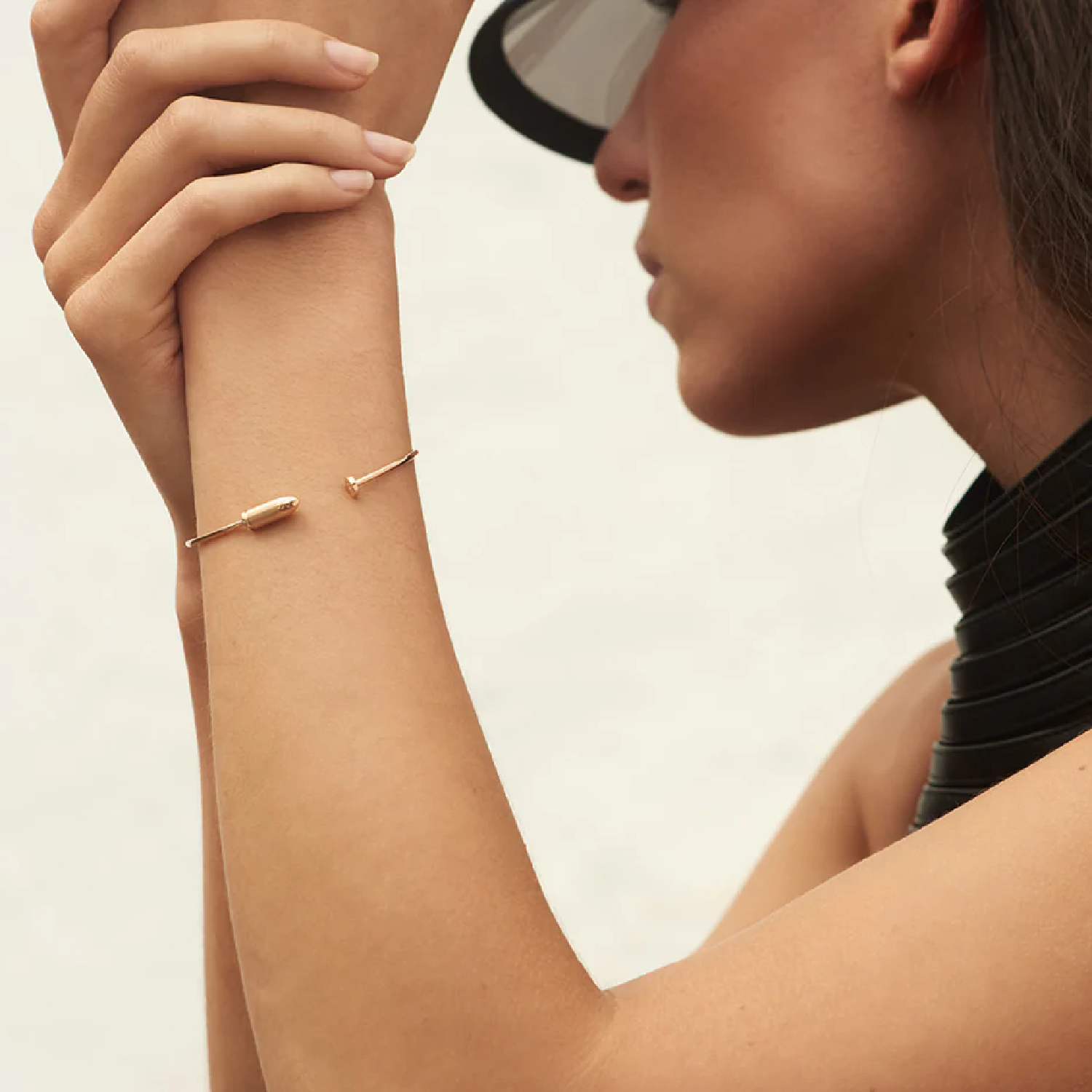 Akillis crea un'esplosione di gioielli con Mini Bang Bang! Questa collezione mista, carica di munizioni proibite, spara proiettili con un look rock & chic, incisivo, insolente e audace. I braccialetti dotano il polso di uomini e donne di un'arma di forza tanto potente quanto deterrente. Misura 16.
