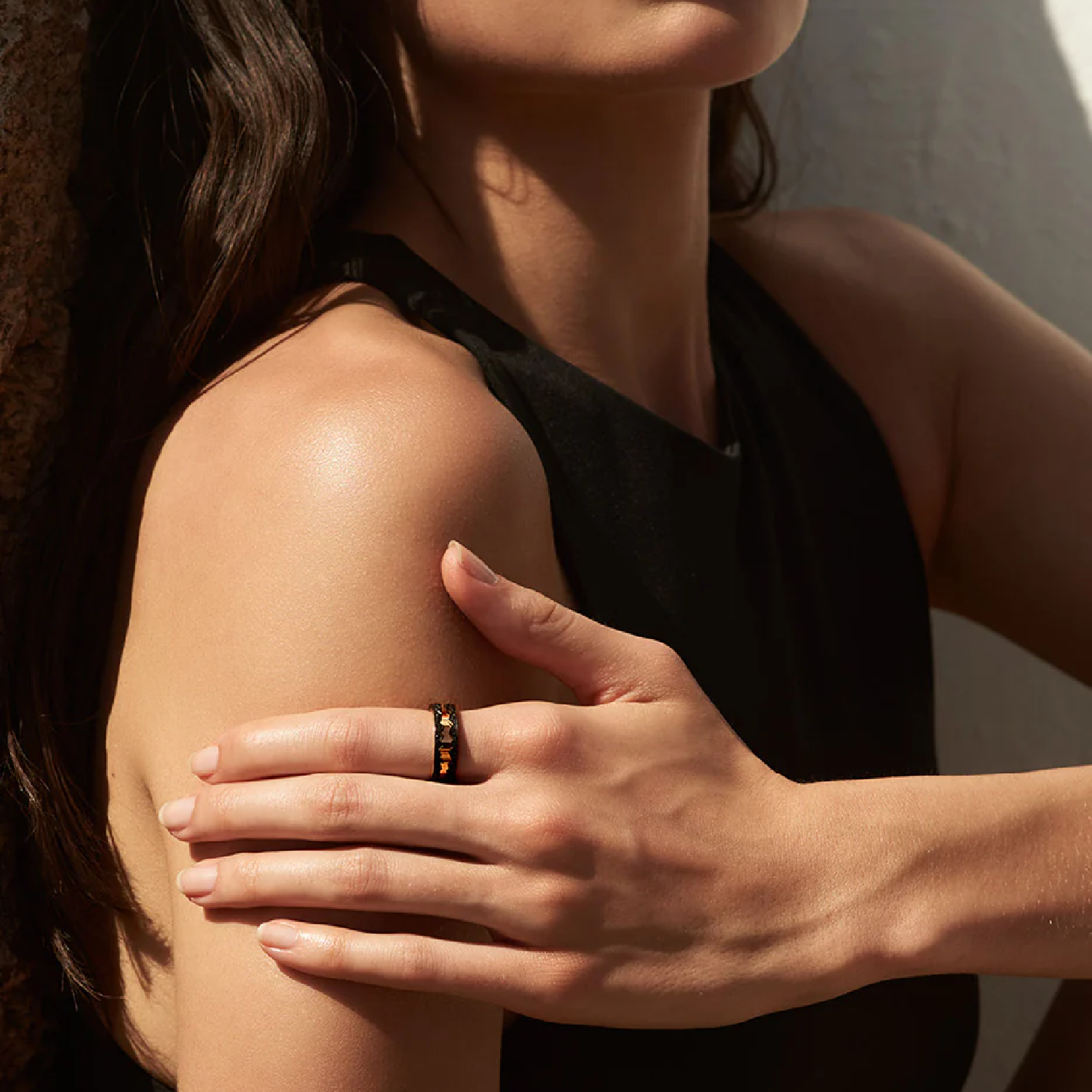 Anello Capture in Motion in oro rosa e titanio, e diamanti neri