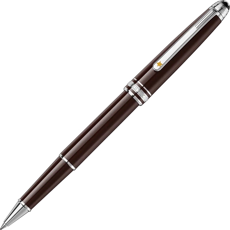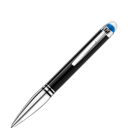 La meisterstück classique in pregiata resina nera con dettagli finitura oro, sormontata dall'emblema a forma di stella bianca, rappresenta un'esclusiva icona di design.