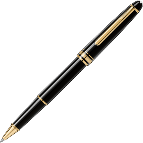 La meisterstück classique in pregiata resina nera con dettagli finitura oro, sormontata dall'emblema a forma di stella bianca, rappresenta un'esclusiva icona di design. REF: 12890