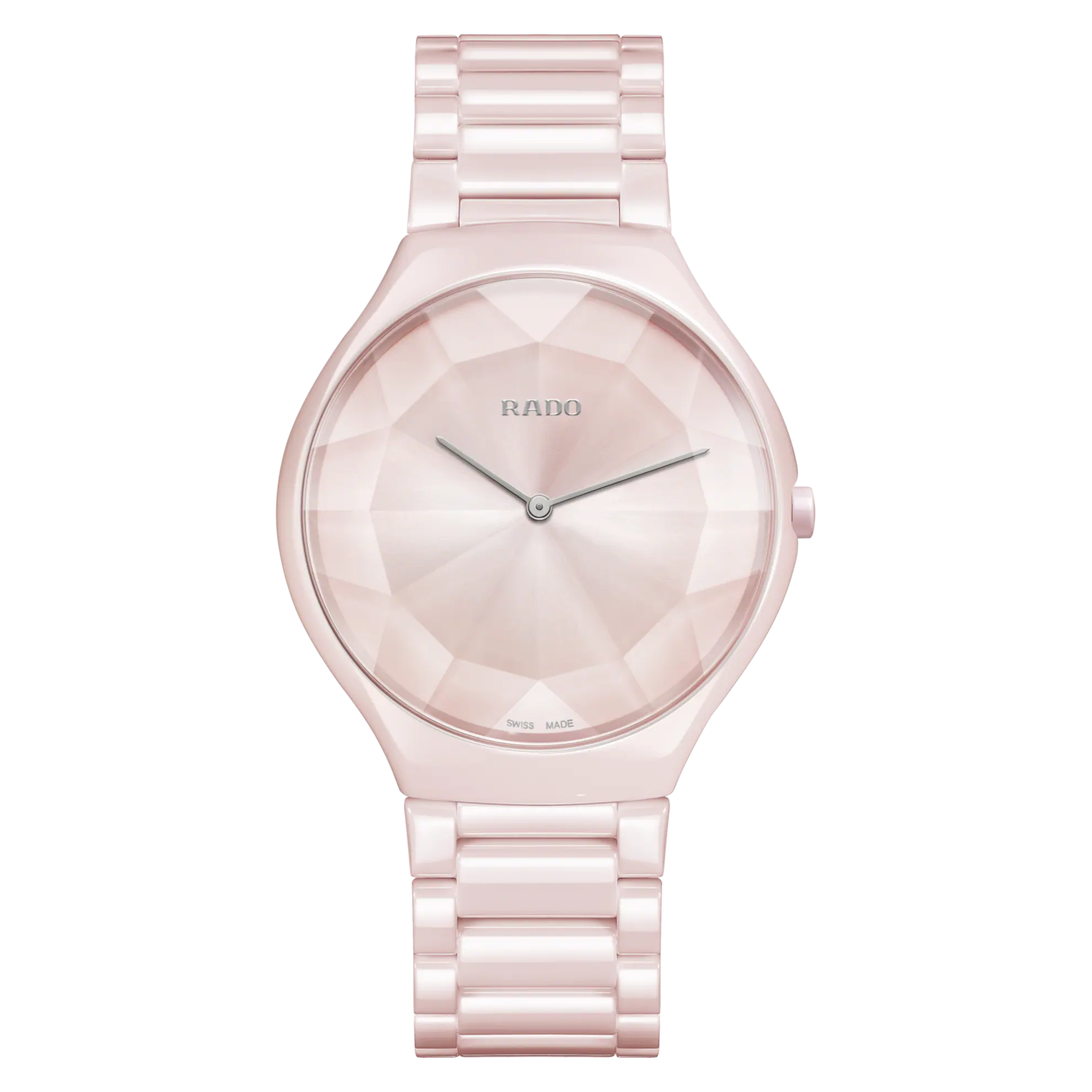 Il True Thinline x Great Gardens of the World Chapter 4 (Spring) annuncia l’arrivo della primavera. Con la sua cassa in ceramica hi-tech color rosa lucido da 39 mm anticipa la nuova fioritura, esaltata dal magnifico cristallo zaffiro sagomato a forma di fiore. Il tema floreale permea anche il quadrante, caratterizzato da una leggera sfumatura dall'argento al rosa chiaro, dal rehaut color rosa e dal logo Rado stampato in grigio scuro. Grazie al movimento al quarzo Rado R420, il segnatempo, dotato di due lancette e di 13 rubini, è preciso e affidabile. Il bracciale in abbinamento è un capolavoro di lucentezza in ceramica hi-tech color rosa. La linea Four Seasons è disponibile anche in un elegante cofanetto da collezione in edizione limitata (150 esemplari) in grado di ospitare tutti e quattro gli orologi.