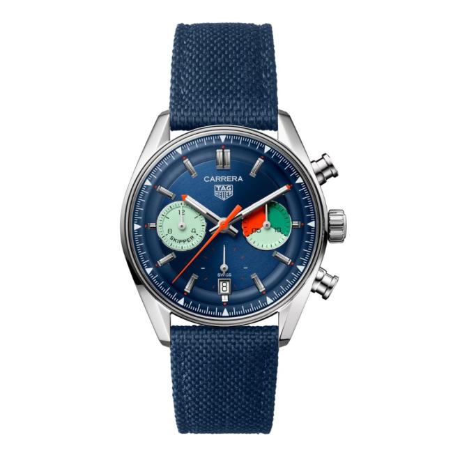 La naturale affinità della vela con gli sport motoristici e la sua incessante passione per la precisione e la velocità ispirano l'emblematico TAG Heuer Carrera "Skipper". Un audace tributo alla nostra tradizione velica trasmesso attraverso uno schema di colori distintivo. Decisamente iconico.