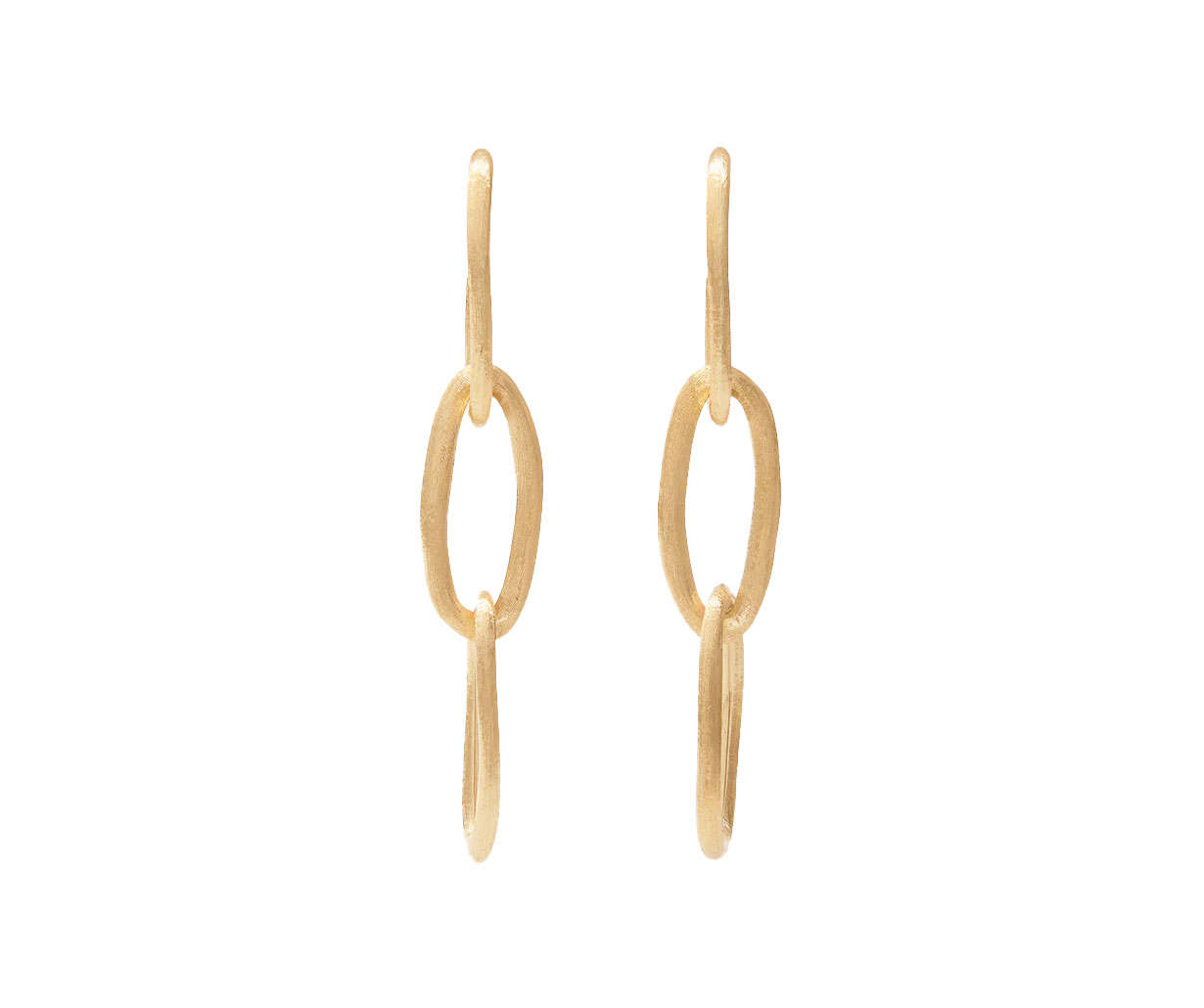 Orecchini pendenti a tre maglie ovali in oro giallo