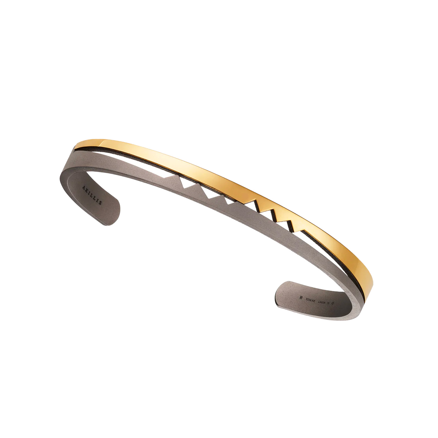 Bracciale rigido aperto da uomo della collezione Capture Me in titanio naturale e oro giallo 18 carati, con diamante nero da 0,01 carati.