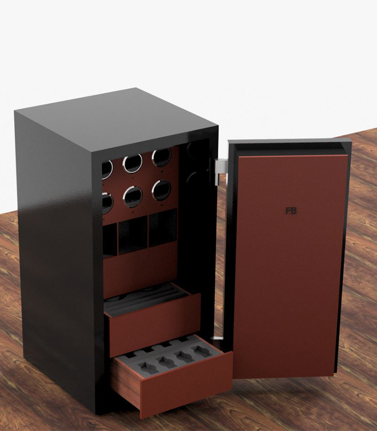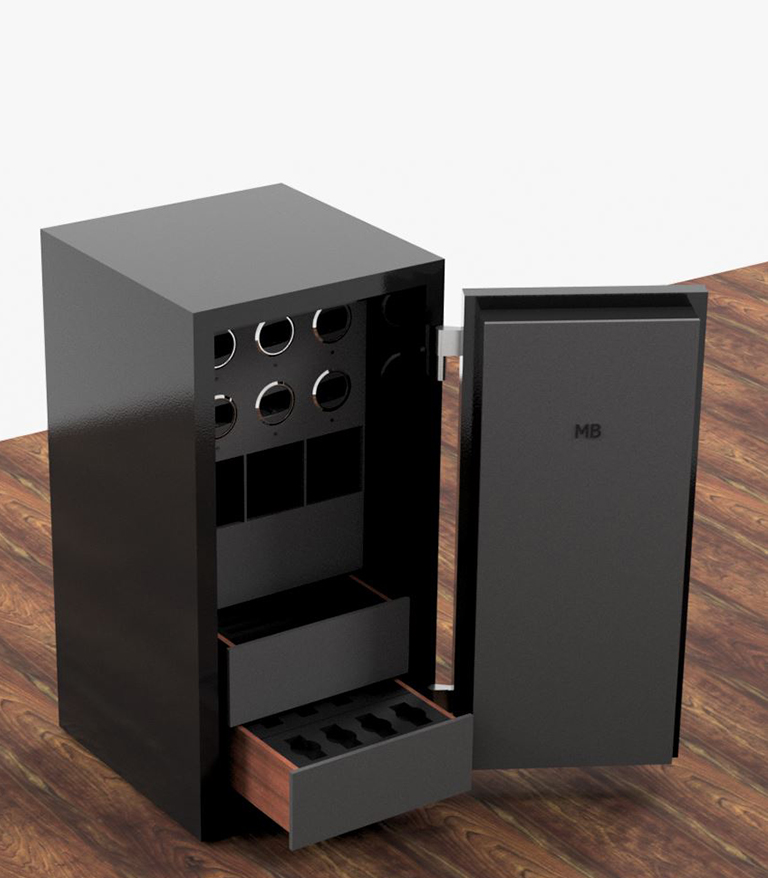 Thanks to our personalised service, we guarantee the highest level of security combined with aesthetics and the uniqueness of the smallest details. An exceptional piece of furniture where you can store your automatic or manually wound watches and all your precious objects.