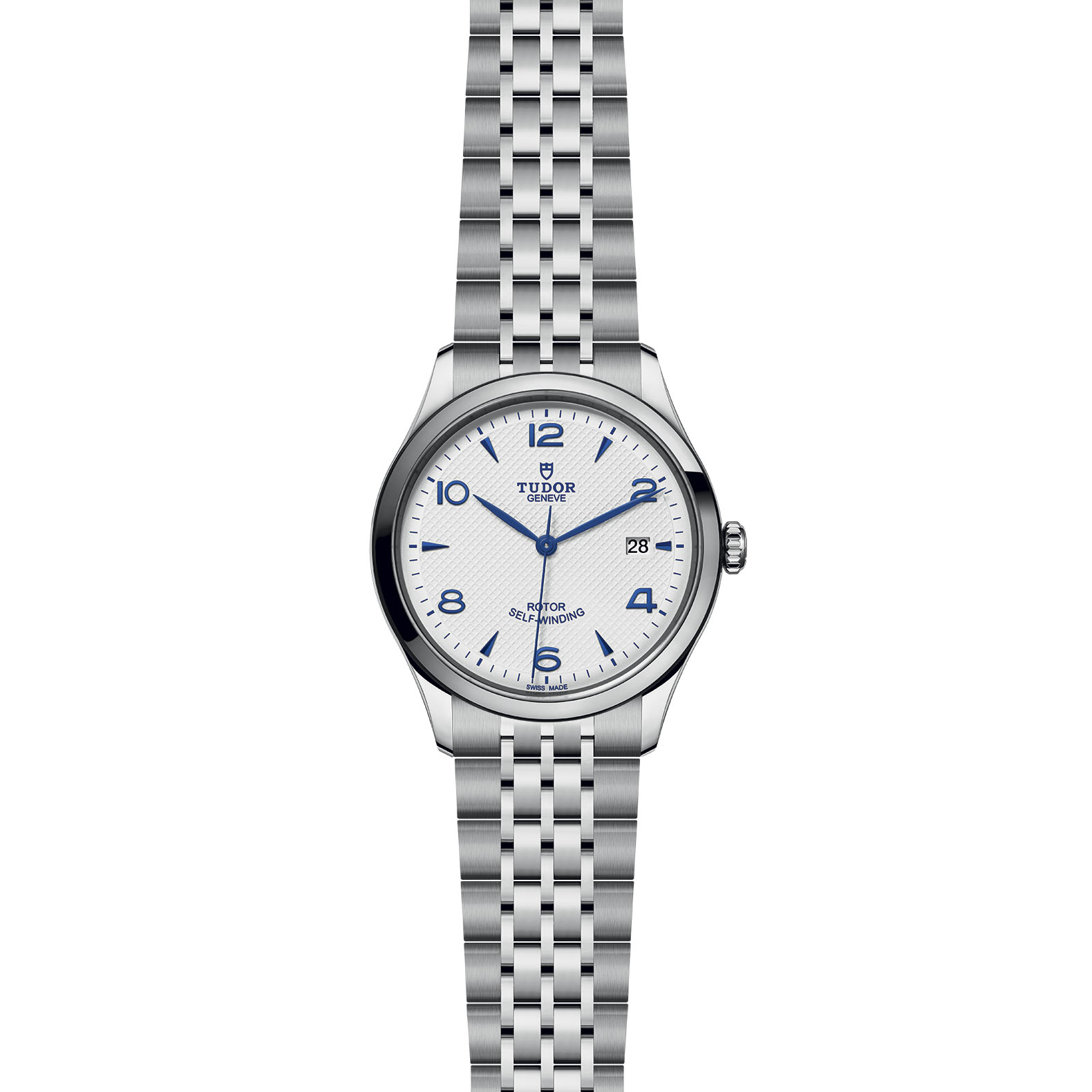 Bracciale in acciaio, 7 file, maglie esterne satinate, maglie centrali lucide, con chiusura pieghevole e fermaglio di sicurezza, Cassa in acciaio, 39 mm, finitura lucida, Opalino, bombato, con decorazione in rilievo, Corona di carica a vite in acciaio con il logo TUDOR in rilievo, Impermeabile fino a 100 m, Lunetta liscia in acciaio, finitura lucida, acciaio, Movimento meccanico a carica automatica, Calibro T601, Quadrante chiaro, Medio, Vetro zaffiro