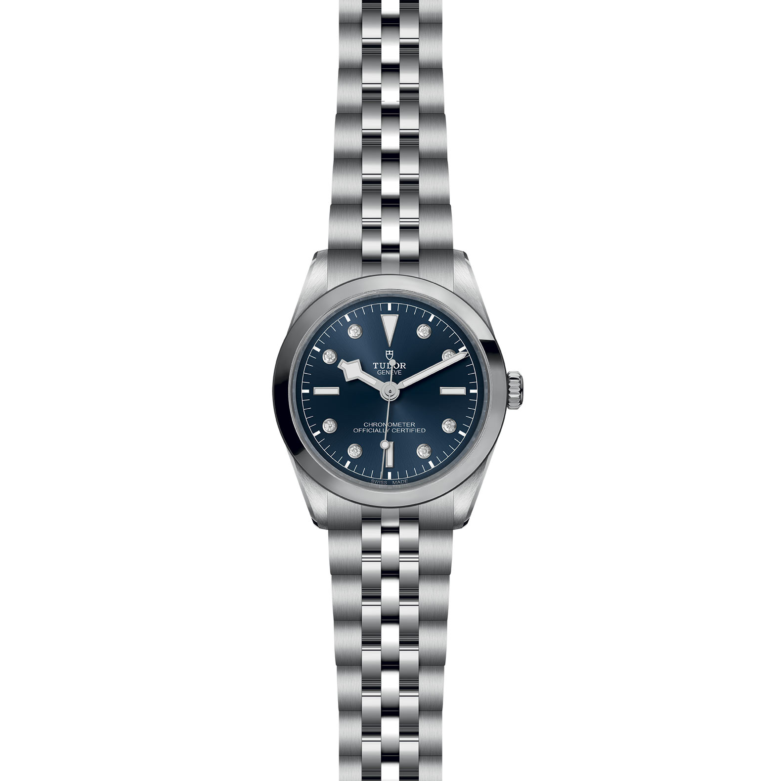 Bracciale in acciaio, finitura lucida e satinata, con chiusura pieghevole TUDOR “T‑fit” e fermaglio di sicurezza, Cassa in acciaio, 36 mm, finitura lucida e satinata, Blu con 8 diamanti, Corona di carica a vite con la rosa TUDOR in rilievo, Impermeabile fino a 100 m, Lunetta in acciaio, finitura lucida e satinata, acciaio, Calibro di Manifattura MT5400 (COSC) Movimento meccanico a carica automatica con rotore bidirezionale, Quadrante colorato, Medio, Vetro zaffiro piatto