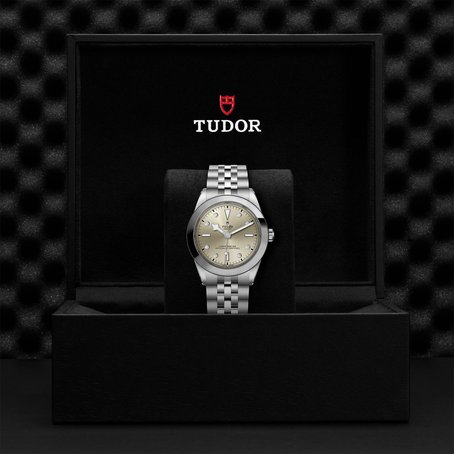 Bracciale in acciaio, finitura lucida e satinata, con chiusura pieghevole TUDOR “T‑fit” e fermaglio di sicurezza, Cassa in acciaio, 39 mm, finitura lucida e satinata, Color champagne chiaro con 8 diamanti, Corona di carica a vite con la rosa TUDOR in rilievo, Impermeabile fino a 100 m, Lunetta in acciaio, finitura lucida e satinata, acciaio, Calibro di Manifattura MT5602 (COSC) Movimento meccanico a carica automatica con rotore bidirezionale, Quadrante colorato, Medio, Vetro zaffiro piatto