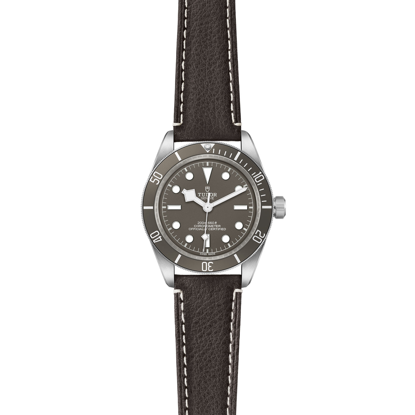 Cinturino in cuoio marrone con fibbia ad ardiglione in argento 925, Cassa in argento 925, 39 mm, finitura satinata Fondello trasparente con vetro zaffiro, Color tortora, bombato, Corona di carica a vite in argento 925, con la rosa TUDOR in rilievo e con tubo della corona in argento 925 satinato con lavorazione circolare, Impermeabile fino a 200 metri, Lunetta girevole unidirezionale in argento 925 con disco graduato 60 minuti in alluminio anodizzato color tortora opaco e indici e numeri in argento dorato, argento, Calibro di Manifattura MT5400 (COSC) Movimento meccanico a carica automatica con rotore bidirezionale, Quadrante chiaro, Medio, Vetro zaffiro bombato