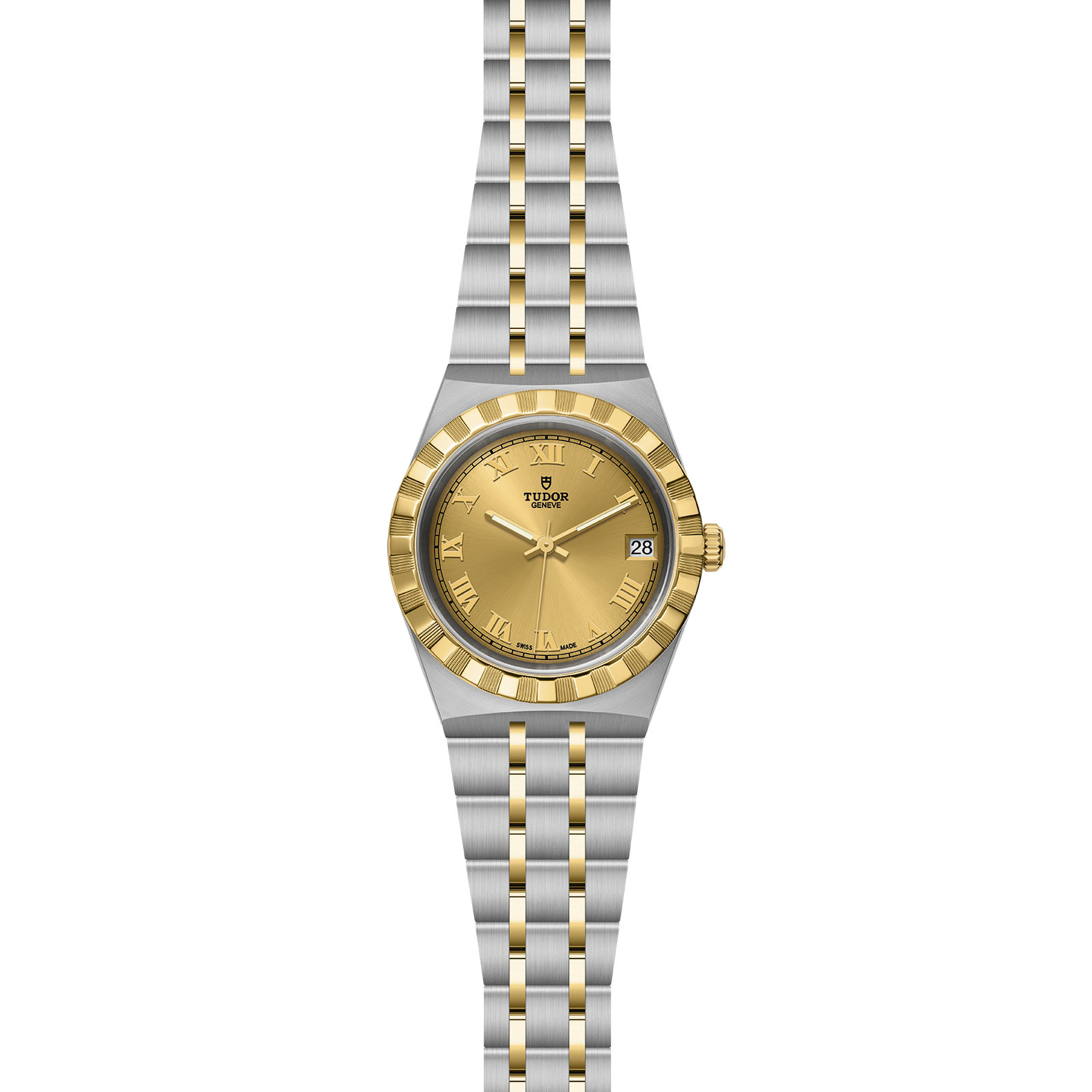 Maglie centrali in acciaio o acciaio rivestito da uno strato di oro giallo di 0,2 mm, Cassa in acciaio, 34 mm, finitura lucida e satinata, Color champagne, Corona di carica a vite con logo TUDOR. Acciaio rivestito da uno strato di oro giallo di 0,1 mm, Impermeabile fino a 100 m, Lunetta scanalata in oro giallo massiccio con scanalature e finitura lucida alternate, acciaio e oro, Movimento meccanico a carica automatica, Calibro T601, Quadrante colorato, Piccolo, Vetro zaffiro