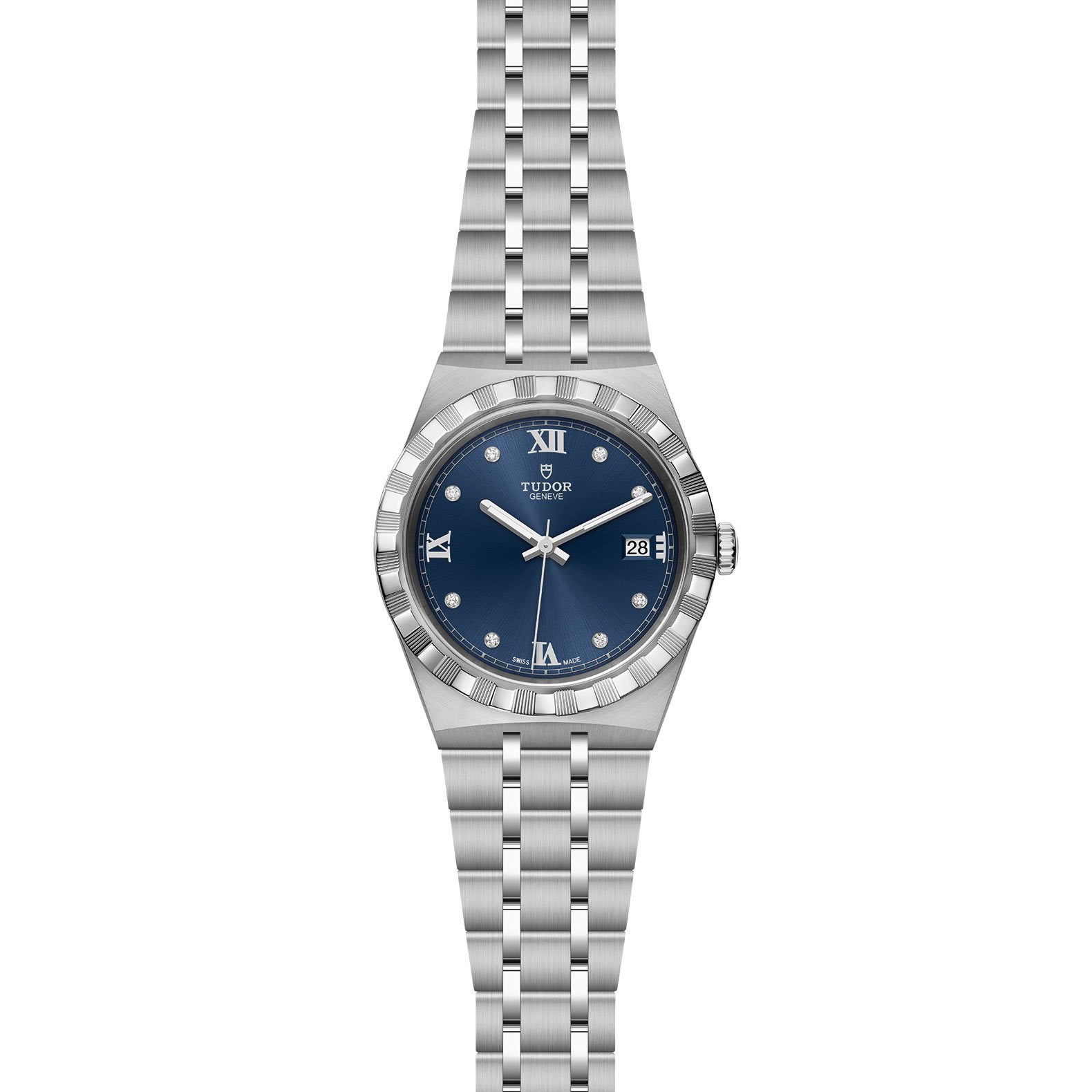 Bracciale integrato in acciaio, 5 file, maglie esterne e centrali satinate, maglie intermedie lucide, con chiusura pieghevole e fermaglio di sicurezza, Cassa in acciaio, 38 mm, finitura lucida e satinata, Blu, finitura soleil, con diamanti, Corona di carica a vite in acciaio con logo TUDOR, Impermeabile fino a 100 m, Lunetta scanalata in acciaio con scanalature e finitura lucida alternate, acciaio, Movimento meccanico a carica automatica, Calibro T601, Quadrante colorato, Medio, Vetro zaffiro