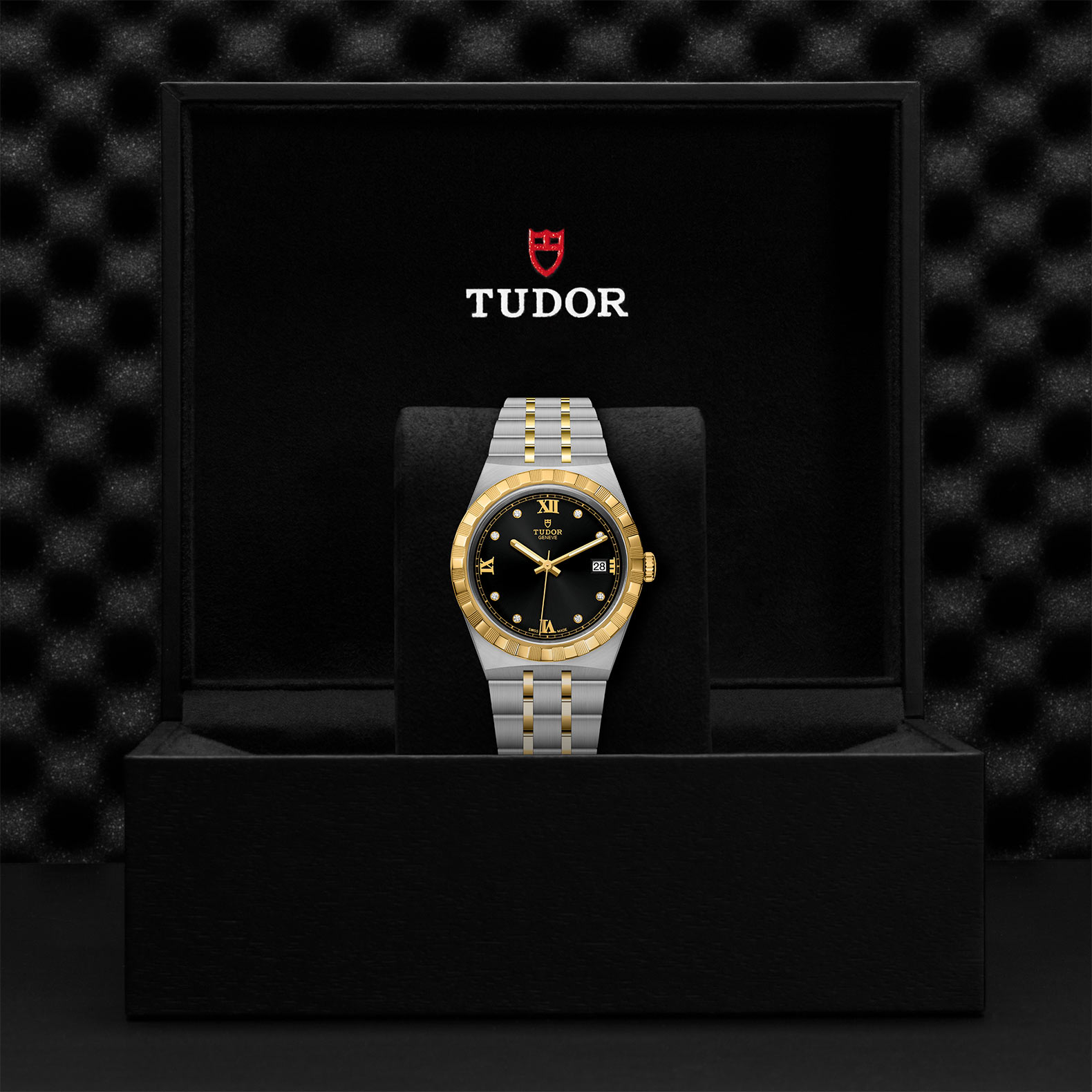 Maglie centrali in acciaio o acciaio rivestito da uno strato di oro giallo di 0,2 mm, Cassa in acciaio, 38 mm, finitura lucida e satinata, Nero, finitura soleil, con diamanti, Corona di carica a vite in oro giallo con logo TUDOR, Impermeabile fino a 100 m, Lunetta scanalata in oro giallo con scanalature e finitura lucida alternate, acciaio e oro, Movimento meccanico a carica automatica, Calibro T601, Quadrante scuro, Medio, Vetro zaffiro