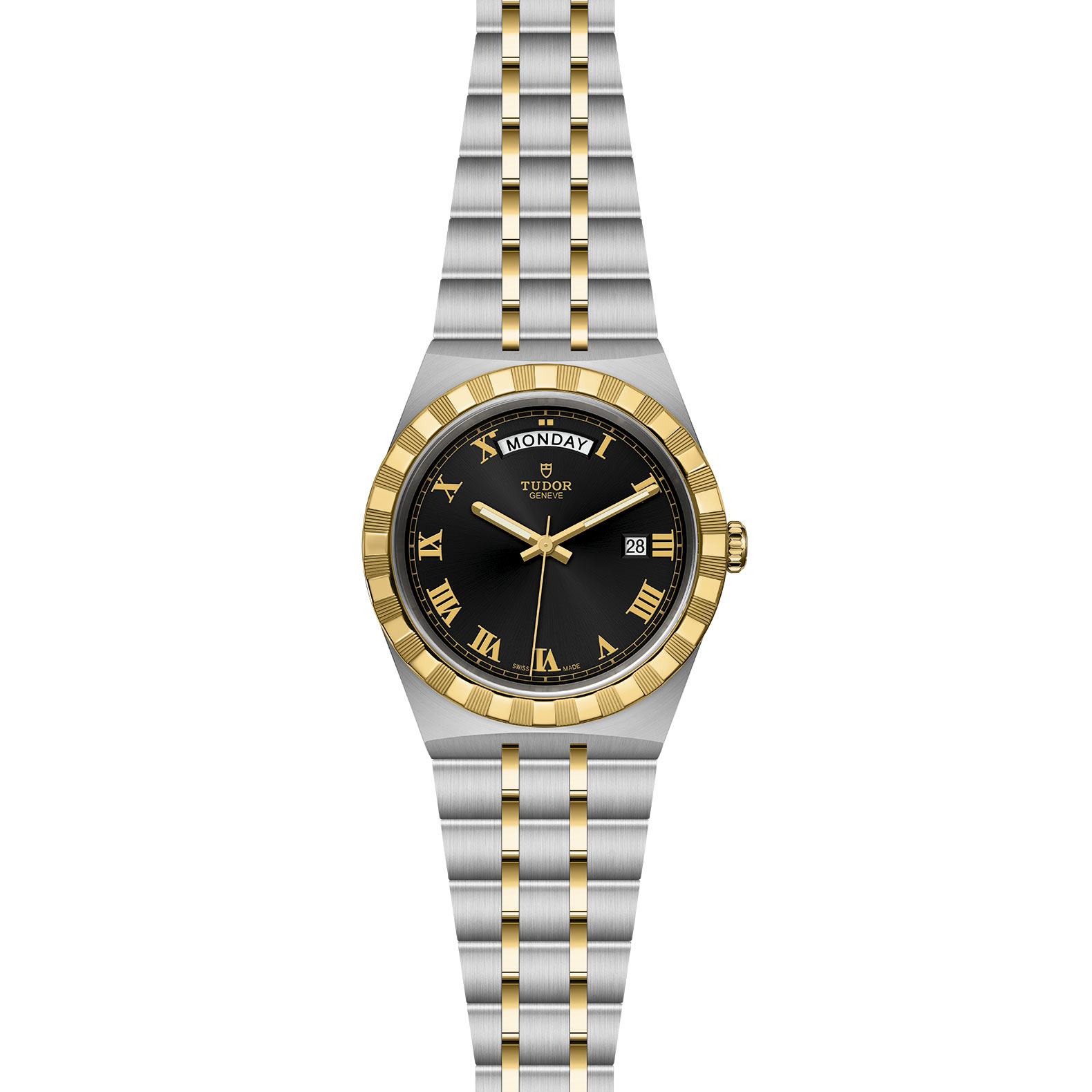 Maglie centrali in acciaio o acciaio rivestito da uno strato di oro giallo di 0,2 mm, Cassa in acciaio, 41 mm, finitura lucida e satinata, Nero, finitura soleil, Corona di carica a vite in oro giallo con logo TUDOR, Impermeabile fino a 100 m, Lunetta scanalata in oro giallo con scanalature e finitura lucida alternate, acciaio e oro, Movimento meccanico a carica automatica, Calibro T603, Quadrante scuro, grande, Vetro zaffiro