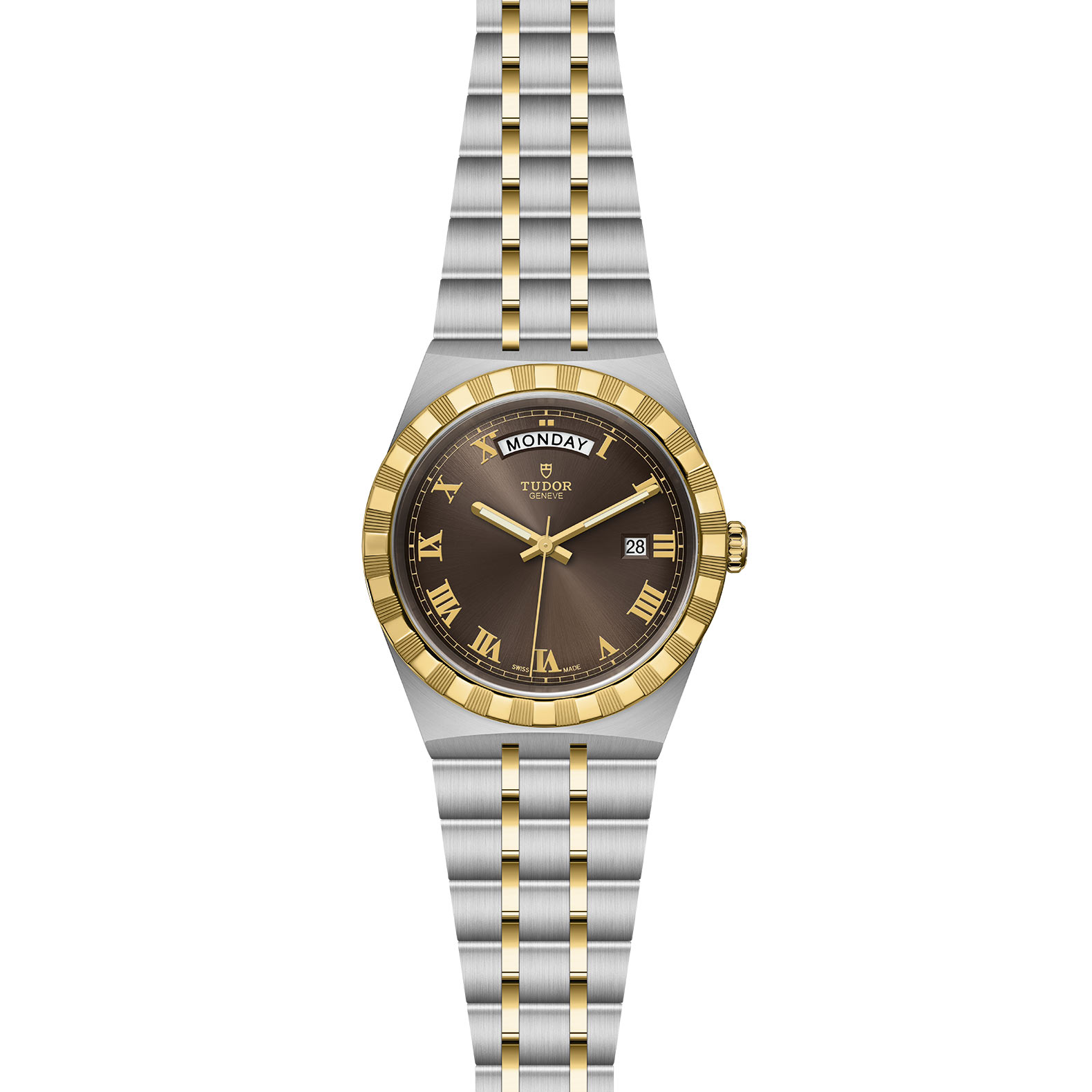 Maglie centrali in acciaio o acciaio rivestito da uno strato di oro giallo di 0,2 mm, Cassa in acciaio, 41 mm, finitura lucida e satinata, Color cioccolato, Corona di carica a vite in oro giallo con logo TUDOR, Impermeabile fino a 100 m, Lunetta scanalata in oro giallo con scanalature e finitura lucida alternate, acciaio e oro, Movimento meccanico a carica automatica, Calibro T603, Quadrante colorato, grande, Vetro zaffiro